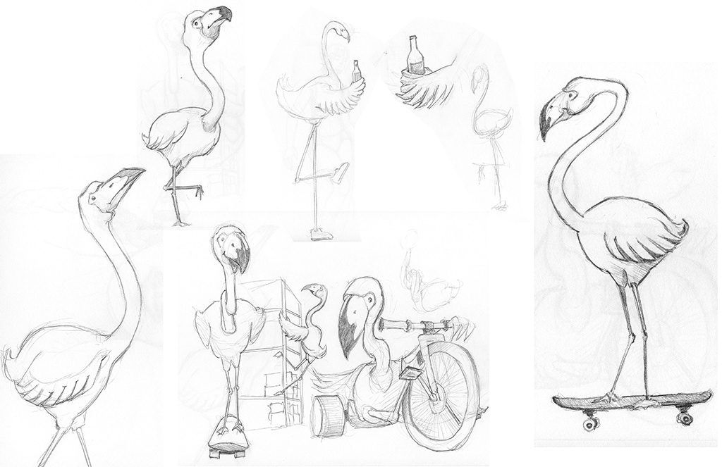 I worked on a project involving a mischievous flamingo. Here's some study sketches...